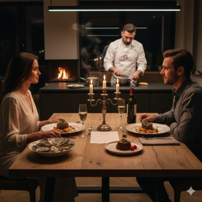 Stellen dir vor: Die Wohnung ist erfüllt vom Duft frisch zubereiteter Köstlichkeiten, ein Privatkoch steht in deiner Küche und zaubert ein Menü, das nur für dich und deine Gäste kreiert wurde. Keine Planung, kein Stress – nur Zeit für das Wesentliche: den Moment.